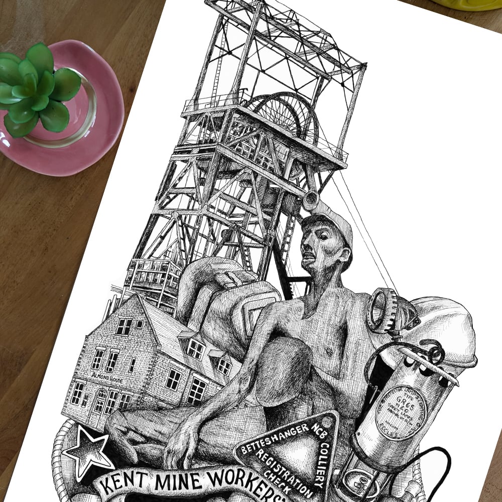 Easily one of the hardest drawings I've ever completed! And also one of the most requested! This montage piece, drawn completely in fineliner pen celebrates the heritage and history of Betteshanger Colliery.