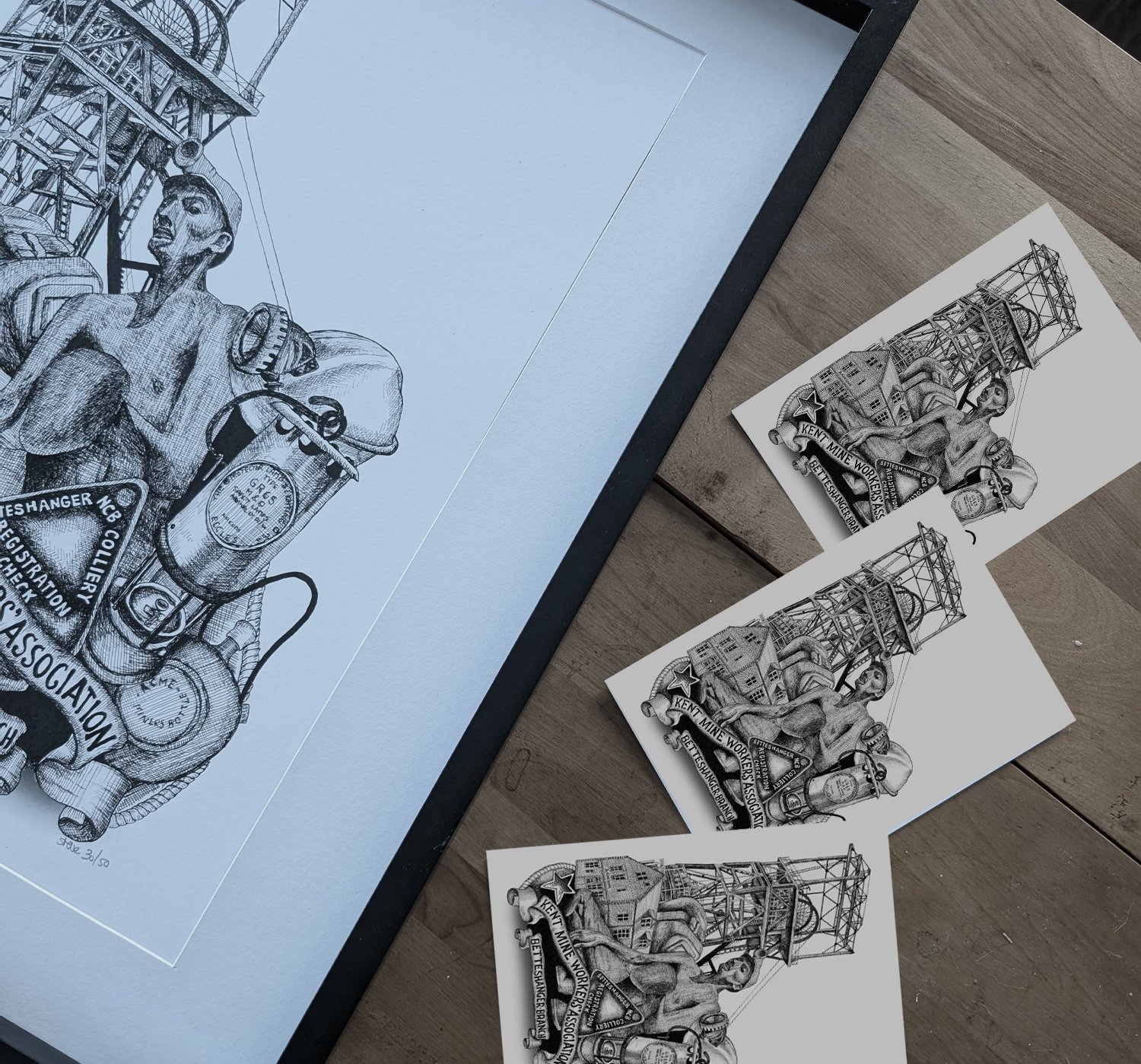 A3 signed and numbered print of my popular pen drawing that celebrates the heritage and history of Betteshanger Colliery.